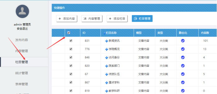 A:勾選所有欄目-------點擊靜態化內容------表示將所有的內容(不包括欄目靜態下)--------后續新發布的可以自動靜態的。