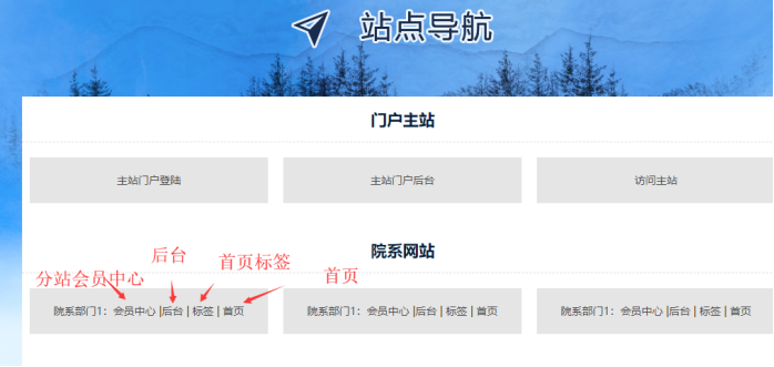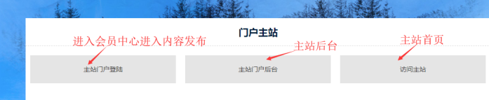 分站后臺入口(分站各種欄目添加設(shè)置)、 分站會員中心入口(分站內(nèi)容發(fā)布與審核)
