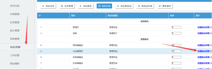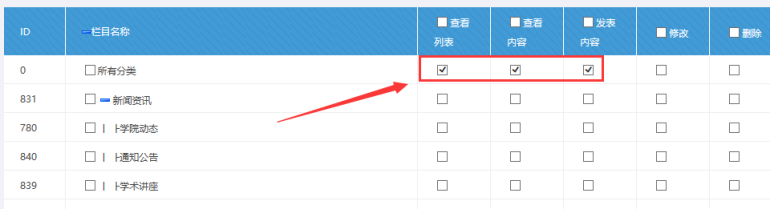 三、分站管理員角色權限設置------設置為可以在主站發(fā)布內容權限