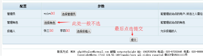 (備注:管理角色這個一般不選,如果選了,就這個角色下的人都可以管理此網站)