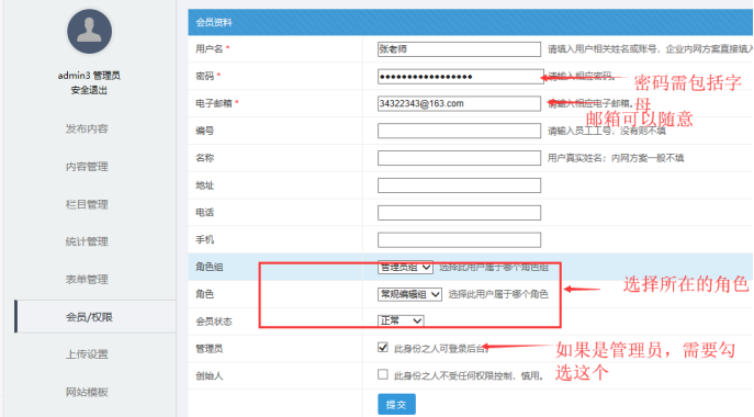 如果是管理員,需要進入后臺操作的權限,需要勾選那個此身份可以進入后臺。