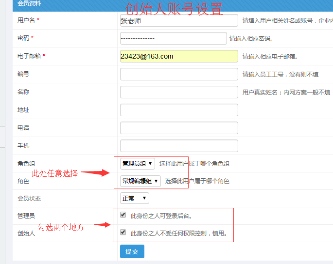 D:如果要添加一個創始人賬號,權限無窮大;添加賬號時候設置如下