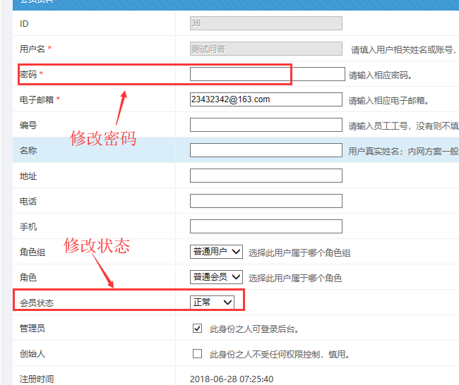 可以修改密碼、修改狀態(有時候剛剛添加的會員,需要重新編輯下,讓其他狀態是正常):