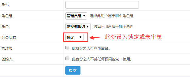 B:如果不允許此賬號登陸,就選擇“待審核”; 所以碰到自己的賬號登陸后空白,就考慮是不是賬號被設置為了待審核了。