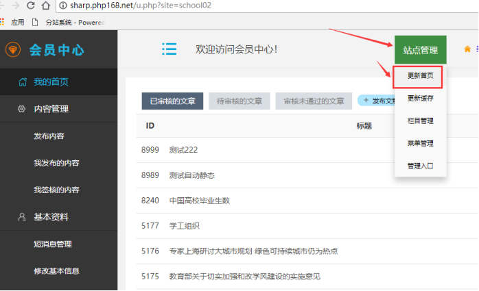 A:進入會員中心-----站點管理---更新首頁 就是一鍵更新了標簽緩存和靜態首頁了。