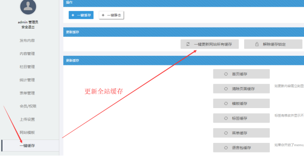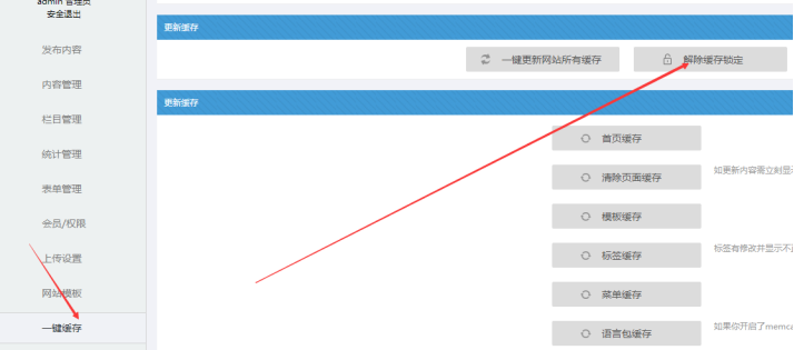 三、更新全站緩存和解除緩存鎖定(后臺操作)