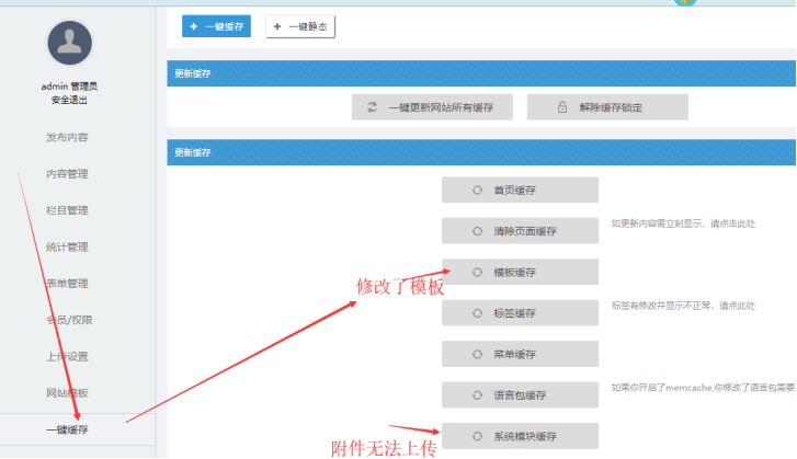 C:無法上傳附件或其他------圖片突然無法上傳------點擊更新模塊緩存
