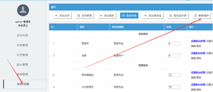 A:刪除的角色沒有起效果,或者設置的權限沒有起效果,就單獨更新角色的緩存
