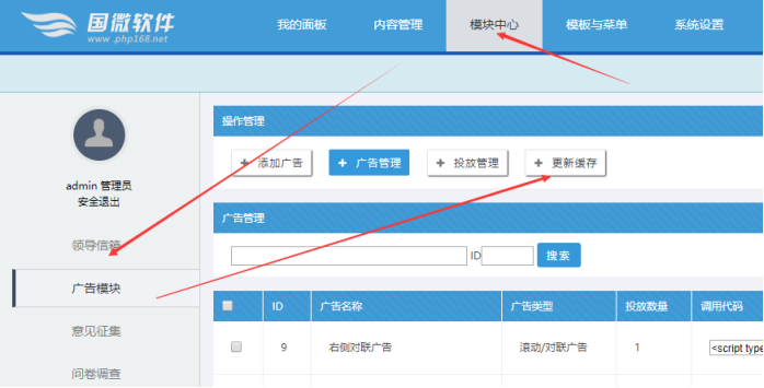 新增了廣告后,沒有效果,需要更新廣告的緩存;就可以看到效果