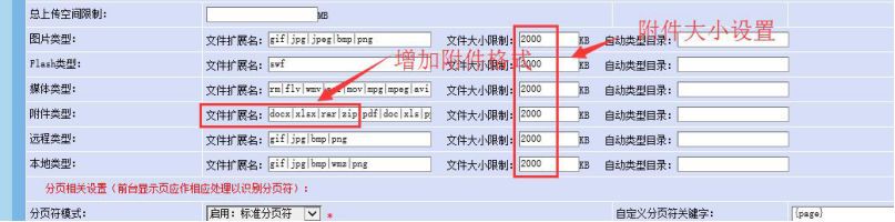 3、設置文件上傳大小和文件格式(很多word圖片無法上傳,就是文件大小限制了)---重要