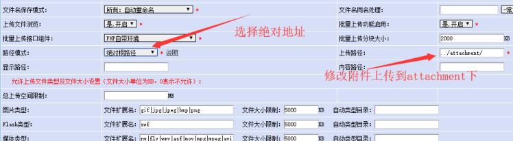 有時候為了動靜態分離方便,上傳路徑需要修改到attachment下,就需要手工修改下。當然這些都可以后面加自己所需的目錄