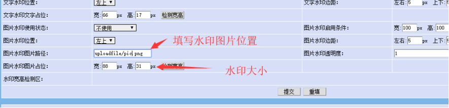 填寫水印所在的目錄地址;水印大小也可設置