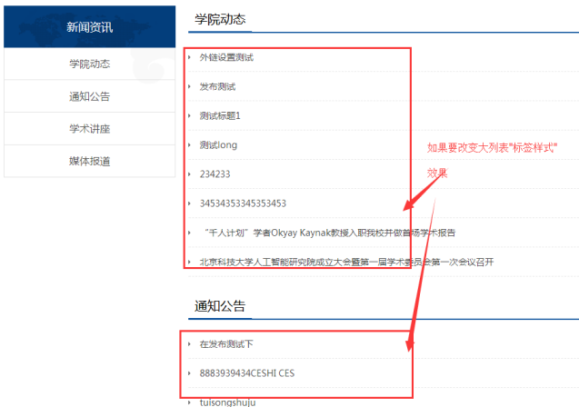 3)、如果有些大列表想與其他大列表的標簽樣式不一樣,比如需要顯示圖文排列效果的,這種情況,就需要新建一個大列表模板,將大列表里面的標簽名字改為不同的,最后雙擊標簽,設置自己所需的樣式即可。