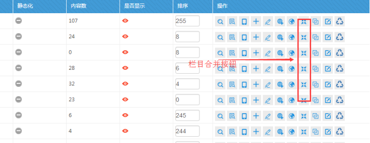 內頁標簽:點擊此處,可以進入內頁可視化標簽狀態; 欄目合并:將此欄目合并到其他欄目