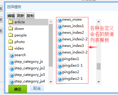 為了方便選擇,每個模板都提供樣式縮略圖;另外這些模板可以任意命名;下面是大分類模板。大分類一般以big_list開頭命名。