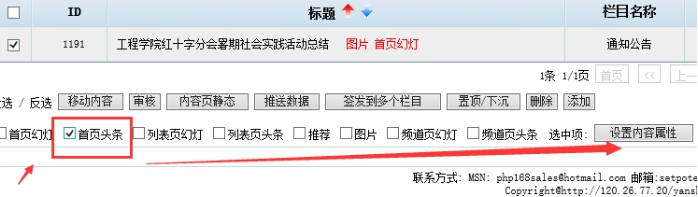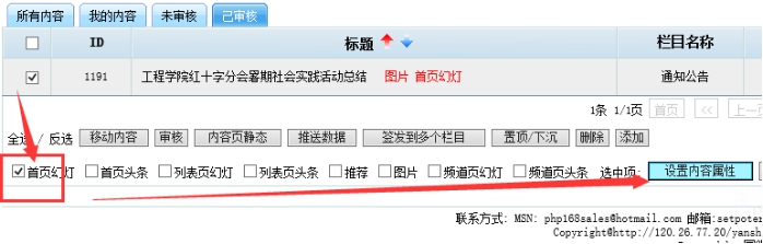 勾選首頁頭條----點擊設(shè)置內(nèi)容屬性按鈕