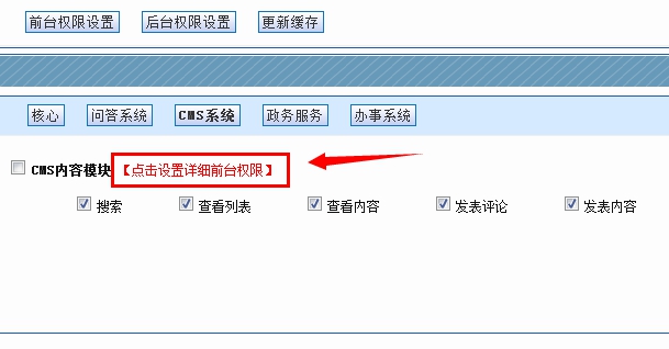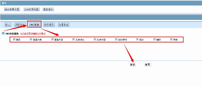 3、進入后,選擇上面的“CMS系統(tǒng)”----全選那些按鈕---最后點擊”確定”