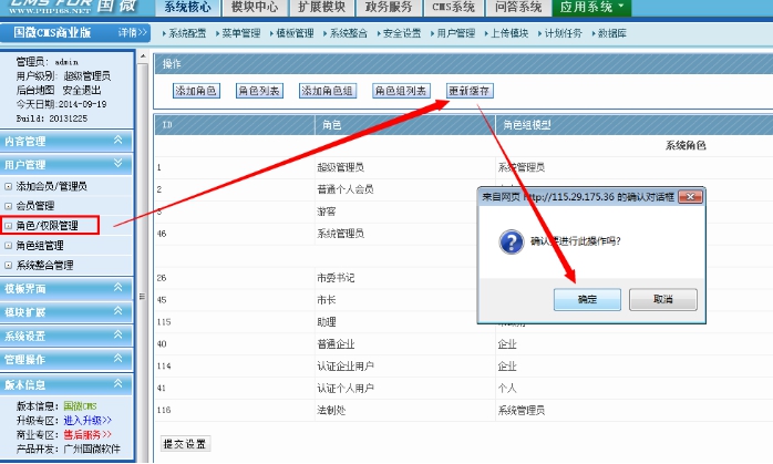 7、最后就是更新這個緩存就可以 。那么王軍就只能管理你所設(shè)置的欄目了。