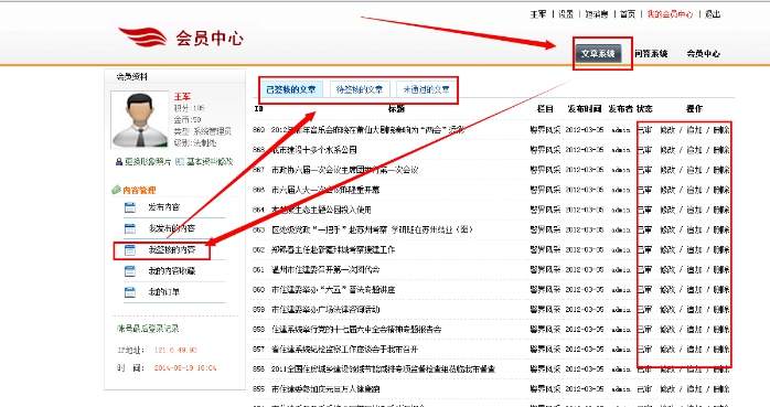 點擊上面的文章系統(tǒng)---左邊的我的簽核,就可以看到他管理的欄目里面的所有內(nèi)容。可以進行審核、刪除、管理。此處只能看到他有管理權(quán)限的。想看到待審核的,就點擊待審核。
