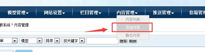 后臺發布:點擊添加內容后,可以展開左邊的+號,顯示小列表;然后點擊右邊的發布按鈕發布內容