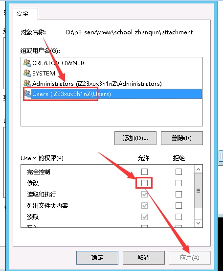 原因3:服務(wù)器中附件文件夾沒(méi)有寫(xiě)權(quán)限
