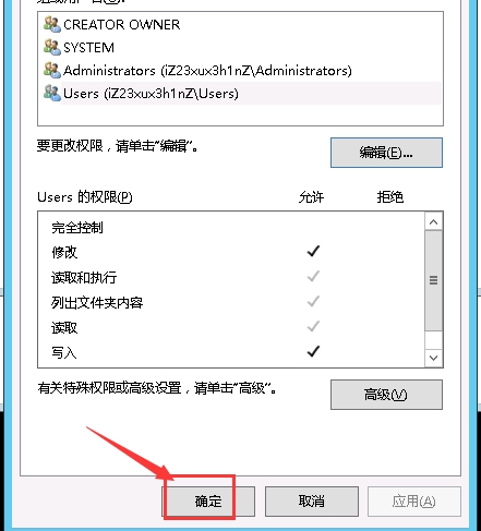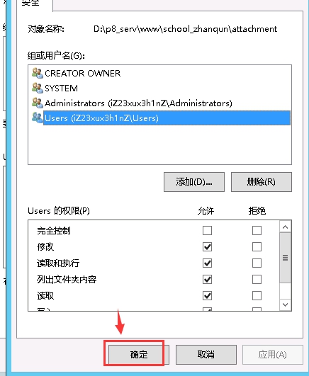 設(shè)置為寫(xiě)權(quán)限后,點(diǎn)擊上面的確定按鈕
