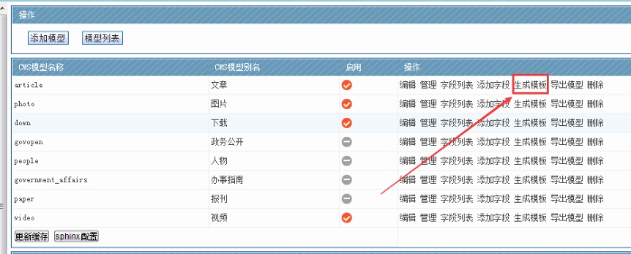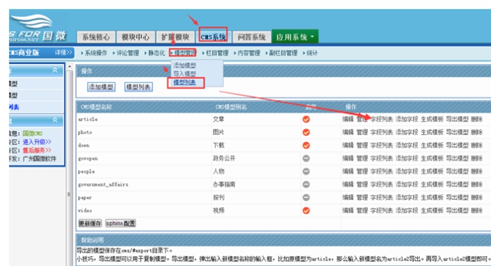 1、今天后臺,打開CMS系統(tǒng)—模型列表---點(diǎn)擊article的字段列表