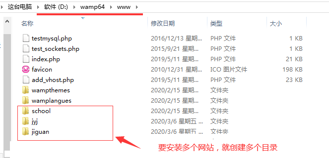 www下可以同時安裝很多個網站,就創建更多目錄,比如jyj、jiguan等等,如下圖,