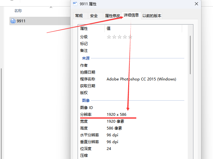 在屬性彈出框中-------點(diǎn)擊【詳細(xì)信息】--------下面的【分辨率】就是圖片的尺寸:比如下面的就是寬和高的尺寸為1920*586像素