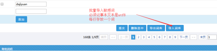 發布內容的時候,如果有敏感詞,發布內容就會提示預警。可以單個手工添加。