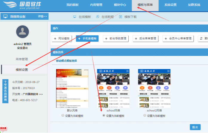 選擇站群子站模板方法;進入網站后臺---站群系統----編輯站點----選擇模板----點擊提交