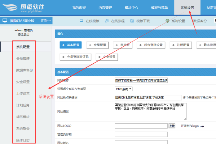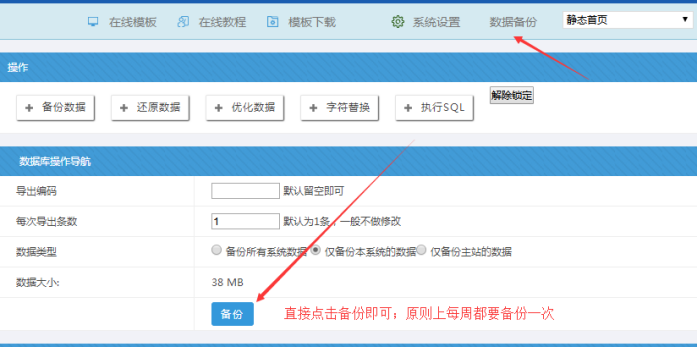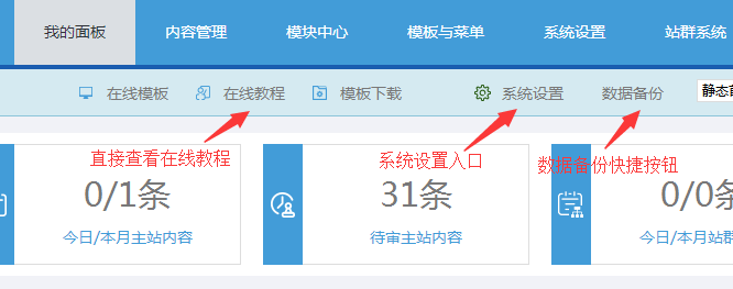一鍵靜態:如果你需要靜態網站,可以點擊此處,不過我們更加推薦在欄目管理處靜態欄目與內容。