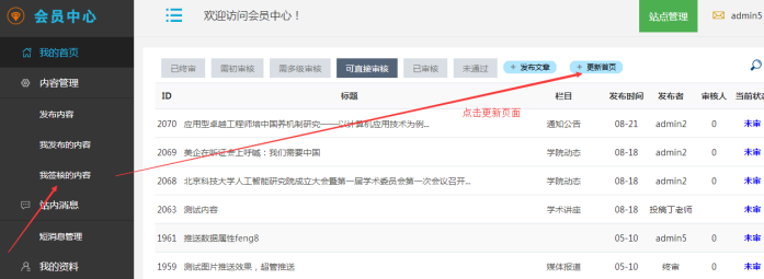 主站欄目管理員,除了具備投稿員發布內容的操作權限,其他的主要功能就是審核和編輯投稿內容,并”更新首頁”