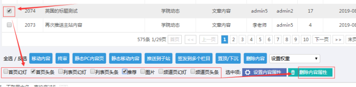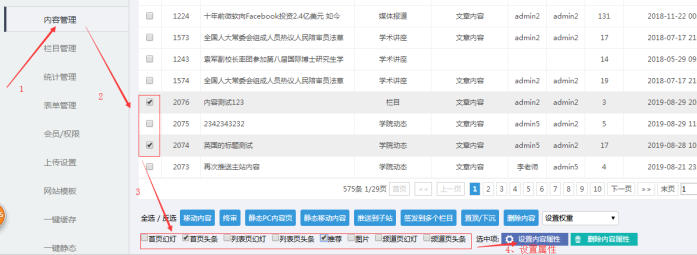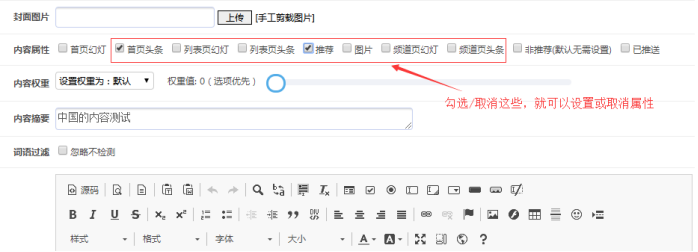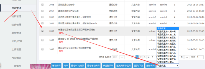 B:后臺方式:點擊內容管理----勾選內容----設置權重