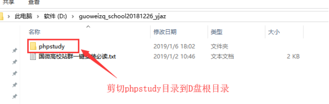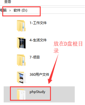 3、然后將phpstudy文件夾剪切到D盤根目錄(目錄位置不能錯(cuò))