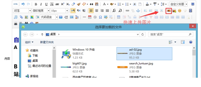 點擊編輯器此處的圖片圖標,可以快速上傳圖片