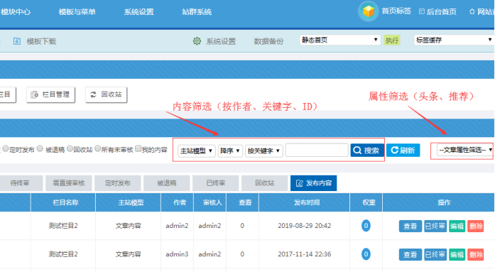 可以根據內容的ID、內容的關鍵字、發布人賬號、作者名稱篩選內容