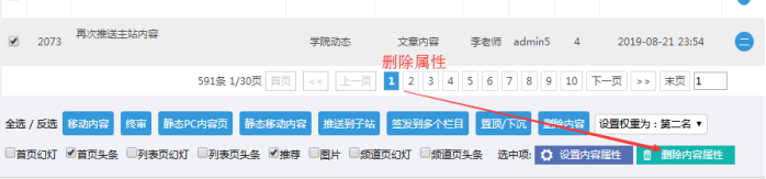 I:屬性的設置與刪除(對內容屬性的處理,比如頭條、推薦)