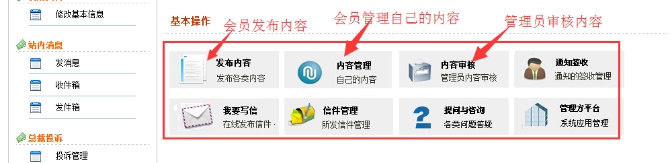 比如發布內容、審核內容等;你的權限網站超級管理員事先給你設置好的。