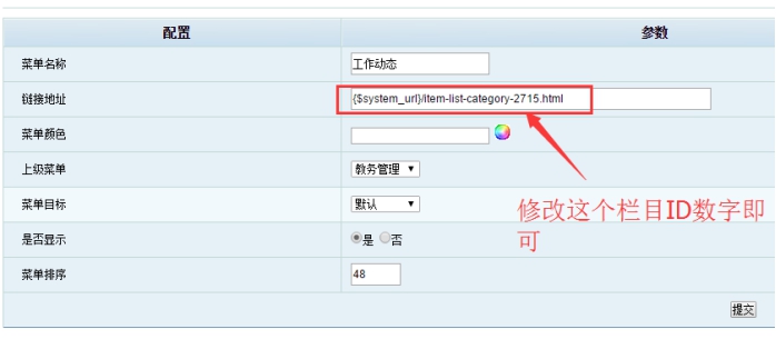 一般是網(wǎng)站內(nèi)容的地址,所以只需將那個(gè)數(shù)字ID 改為欄目的ID即可: