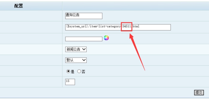 修改此正確的ID,查看下欄目列表,查看通知公告的ID,并填入之: